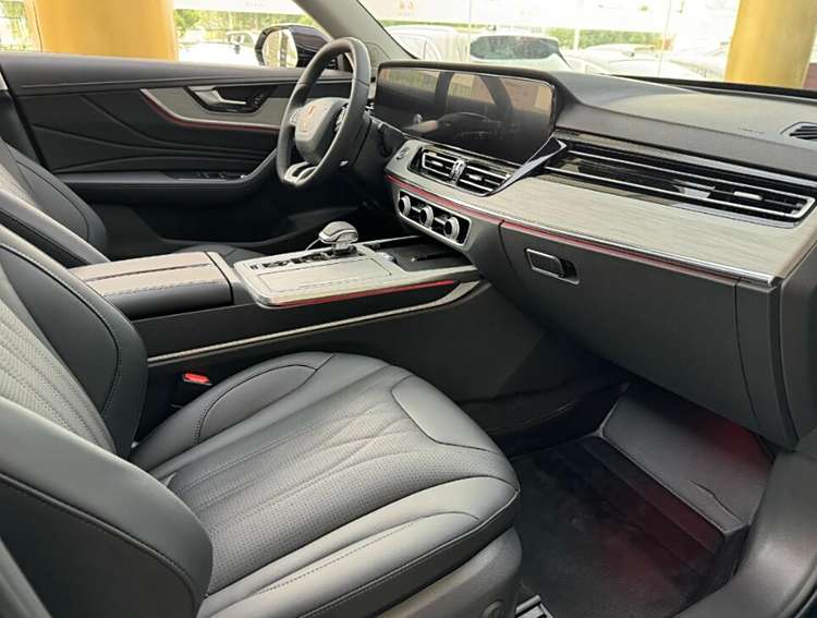 新款紅旗HS5的內飾同樣采用了穩重的設計風格,和外觀的風格相呼應,中控臺采用的是對稱式的布局,部分區域采用的是軟質以及皮質材料包裹,細節處裝飾的鍍鉻飾條來提升質感。液晶儀表盤的造型大方,能夠顯示清晰豐富的數據,并且和中控屏組成了聯屏的設計,內置的車機系統功能豐富,多功能方向盤造型圓潤,抓握感不錯。操控臺區域的布局工整,換擋桿的造型厚實。座椅采用的是皮質材料包裹,縫線描述的較為清晰,能夠提供不錯的支撐性和包裹性。