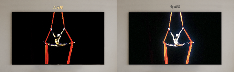 首先,在畫質方面,相比較海信E7N,TCL Q9K顯然更深得我心,其中有很大一部分原因在于其首發了TCL全域光暈控制技術。要知道,光暈可是影響電視畫質的核心因素。我家之前的電視就因為控光能力不足,容易引起畫面邊緣發光、泛白等現象,更嚴重的還會在發光物體的周邊“糊”上一層光霧。