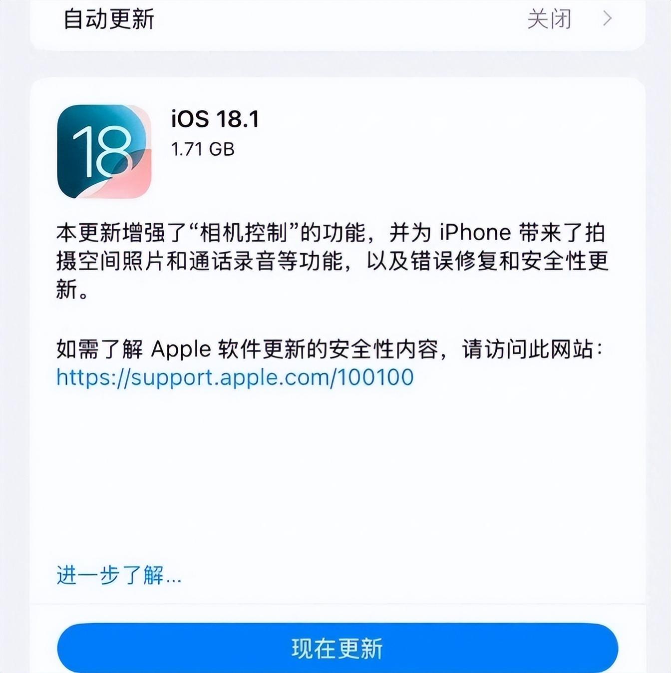總結來說,iOS 18.1這次更新確實給力,既有用戶期待已久的實用功能,又保持了系統的穩定性。這次更新的意義,不僅在于功能本身,更在于展現了蘋果對用戶需求的重視。期待后續的更新能帶來更多驚喜。