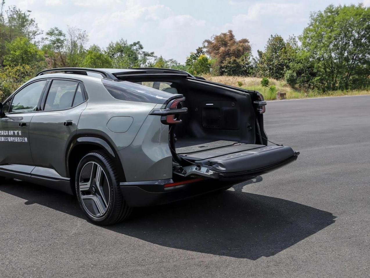 尾部造型非常方正,與特斯拉Cybertruck類似,并且車尾上方的電動蓋板可像天窗一樣打開變成皮卡,用戶可以根據(jù)不同場景自由切換。