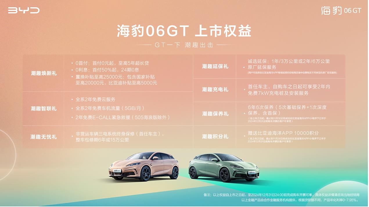 在說產(chǎn)品之前我們先說價(jià)格,畢竟年輕人的手頭都不是很寬裕,所以他們對(duì)價(jià)格非常敏感。海豹06 GT的售價(jià)區(qū)間為13.68-18.68萬元,按照慣例,入門版和頂配選的比較少,所以真正主銷的車型就是14.68萬和16.28萬元的海浪Plus版和熱浪版。前者續(xù)航505km,后者則為605km(均為CLTC工況),日常使用肯定夠了。說實(shí)話,全款并不現(xiàn)實(shí),除非是土豪,但按貸款10萬來算,消費(fèi)者準(zhǔn)備6、7萬就能直接落地提走了,壓力并不大。此外,比亞迪還很貼心的提供了0首付和0利息的購車方案,年輕人也可以根據(jù)自己的需求來選擇具體的貸款方案(具體可看下圖)。