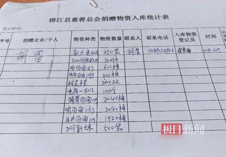 物資交接單上寫著5.5萬元,加上朋友買的2萬多元,總共近8萬元。胡雷說這些錢是他半年的收入。他沒要任何收據(jù),只拍了照片發(fā)給關(guān)心他的人。