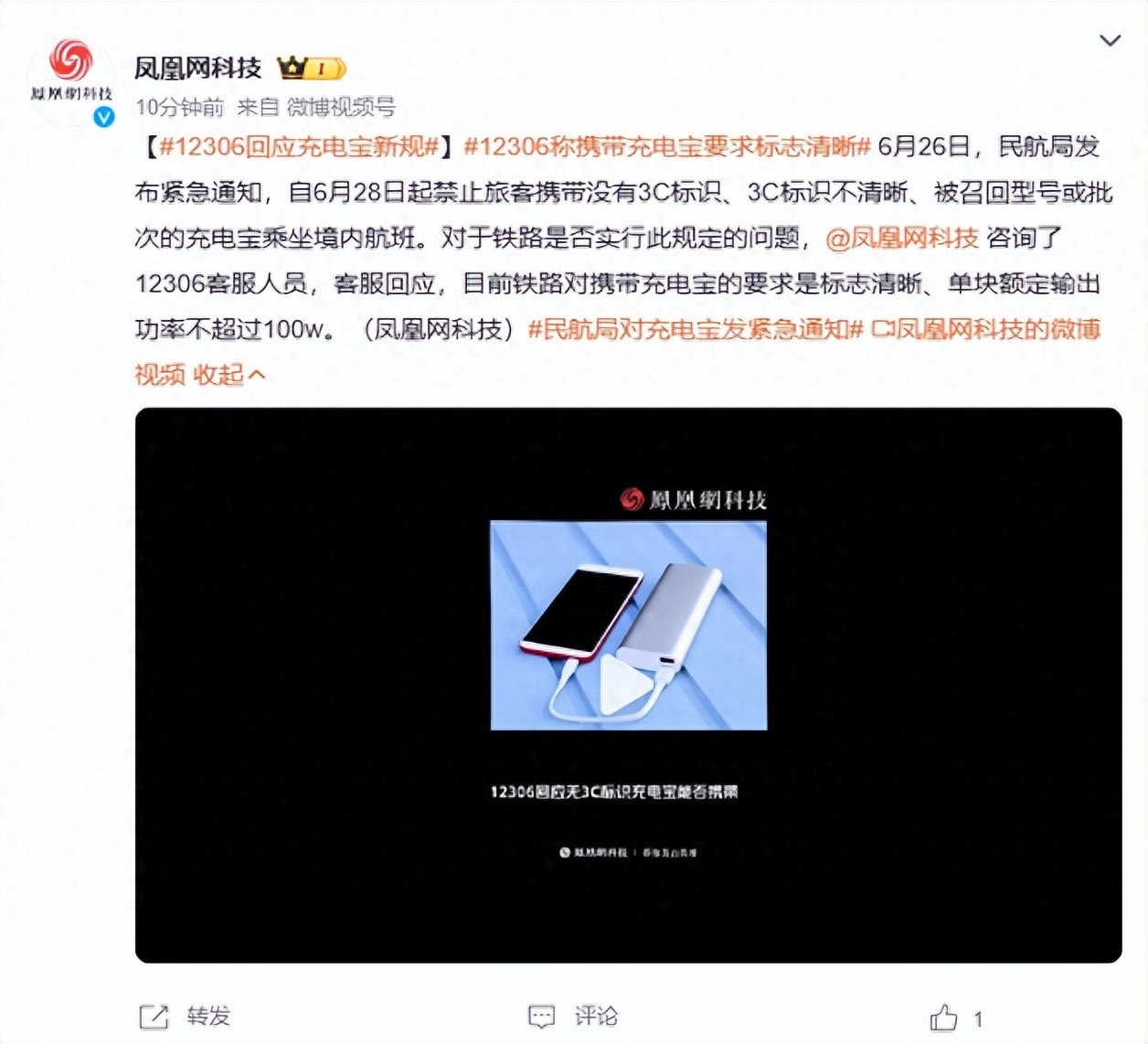 據鳳凰網科技報道,對于鐵路是否實行此規定的問題,12306客服人員回應稱:目前鐵路對攜帶充電寶的要求是標志清晰、單塊額定輸出功率不超過100W,客服暫未提及涉及3C認證或召回批次管控。
