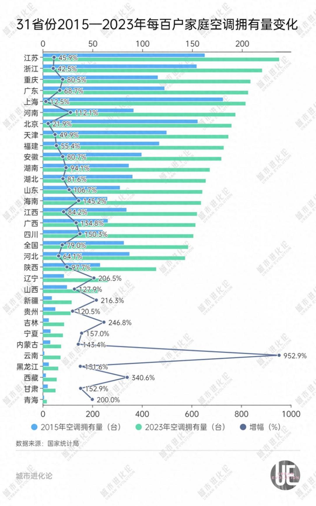 火爐區(陜、川、新)空調擁有量竟低于全國水平?!