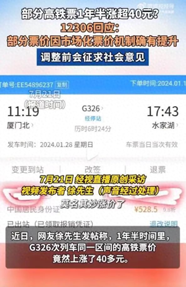 12306回應G326次列車票價漲幅近1成,高鐵漲價不能“靜悄悄”