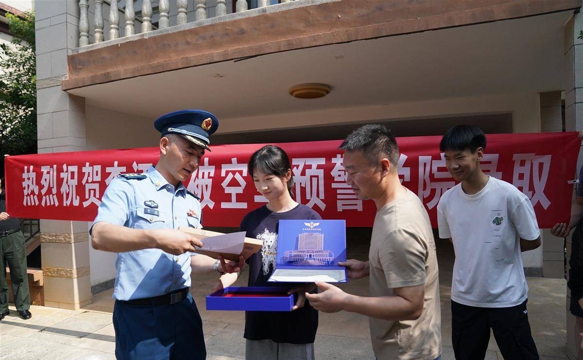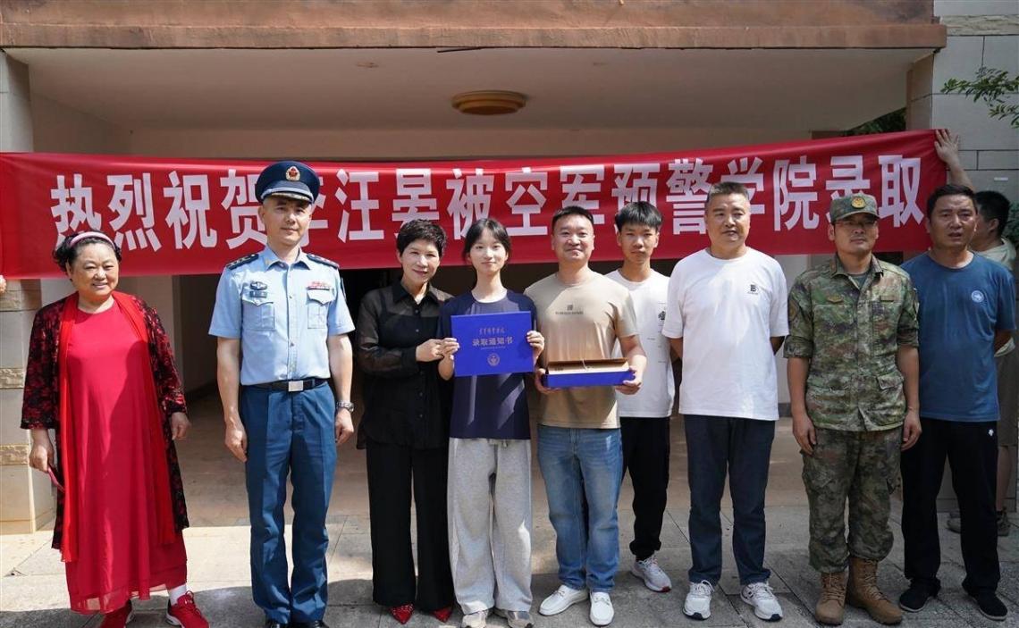 湖北赤壁一個小區來了不少穿正裝的人。他們給剛考上空軍預警學院的李汪晏送錄取通知書,橫幅寫著"熱烈祝賀"。李汪晏高考考了621分,這個分數能上985大學,但她選擇考軍校,說是自己從小的夢想。