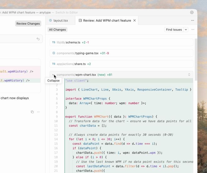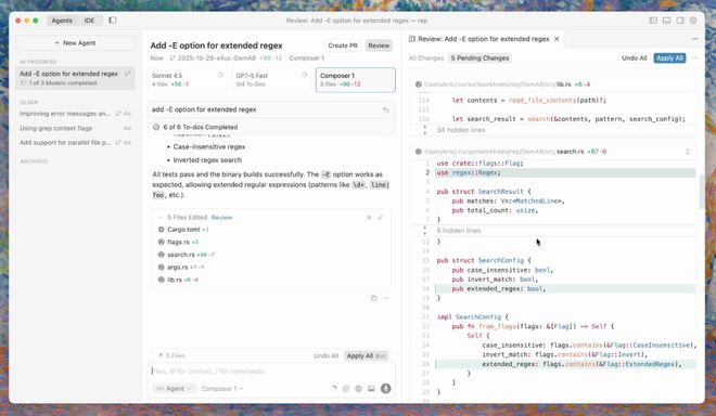 這次更新還引入了全新的代碼審查功能,更容易查看 Agent 在多個文件中的所有更改,無需在各個文件之間來回切換。